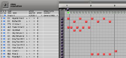 3. Now set up a simple drum pattern. If your sequencer has a drum editor, you