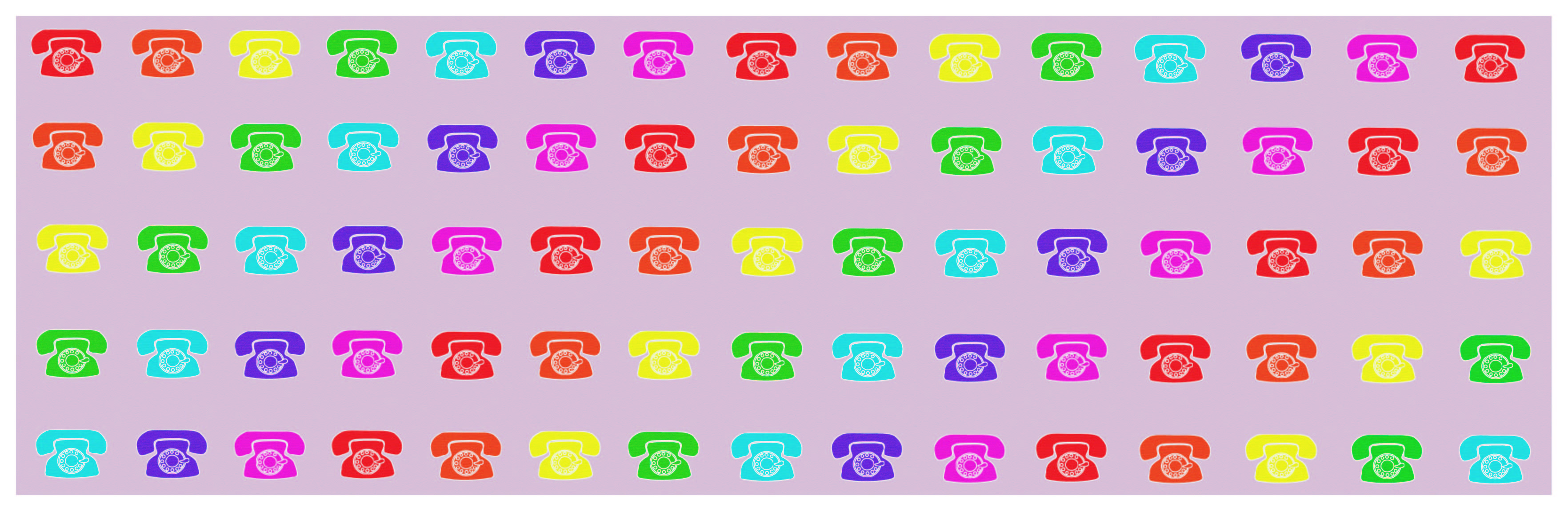 The digital background that I created for the song “Telephone Hour” from the play soundtrack “Bye Bye Birdie” was made using Adobe Illustrator. After learning about vector art and Illustrator in my Advanced Computer Multimedia class, I was asked to create a background for our high school’s play. I was inspired to both make an interesting piece and help my teacher. Out of the song list, Telephone allowed for the most inspiration. As I listened to the song, I noticed that the lyrics jumped around both to and between many different people and the dialogue is cheery and semi-frantic. My first thoughts were phones and a lot of different colors. The phones because the song revolves around phone calls and colors because when I think of quick, hectic dialogue I imagine a lot of bright colors would represent that well. I wanted to create a background that visually captured the mood of the song. The focal point of my piece is the color scheme. The bright colors of red, orange, yellow, green, blue, purple, and pink are meant to catch the audience’s eye and draw them in to then notice the old-fashioned phones. I also decided to neatly line the phones up in five rows of fifteen and then have the colors start from red to pink in vertical rows across the screen. While working on my project, I felt it could be more visually appealing and was slacking an essential component to completely bring the piece together. I was given the recommendation to have the colors on the phones staggered diagonally across the background. Once I made this change, it fully brought my piece together.