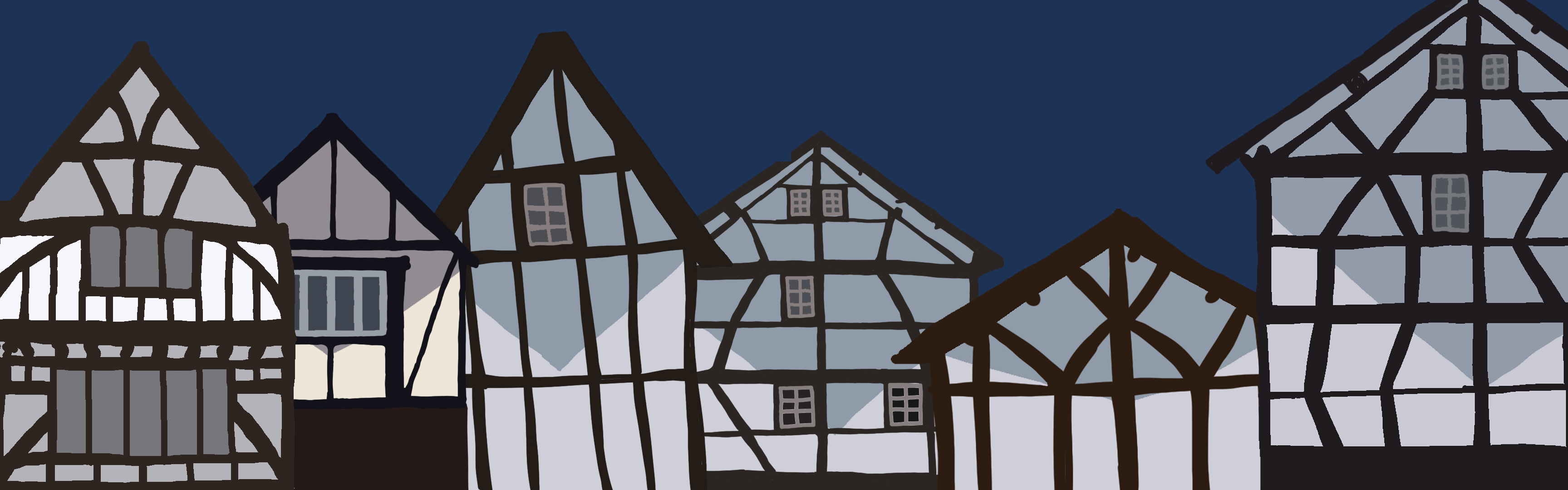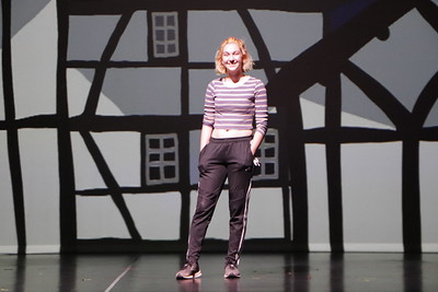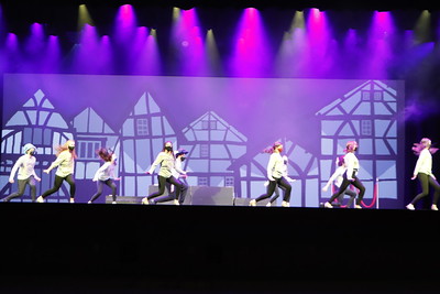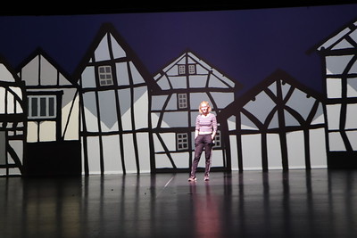 Welcome to the Renaissance, from the musical Something Rotten was a much smaller song that was put together in the revue. This particular song had a lack of costumes and also a lack of set. The background not only had to stay with the simplistic nature of the set it was being designed around but also complete the song as a whole. With this, inspiration from other theater’s productions of this song, and a few lyrics key lyrics of the song the process began. This song takes place in the town square and in the song it indicates, “Our houses all are Tudor.” So of course the houses surrounding the town square had to be Tudor-style houses. In order for the background to blend well with the action happening on stage, I decided to create everything in a cartoon style. This allowed the background to remain simplistic but also have the same feel as a traditional backdrop. Overall this background worked well with the people on stage and the set that was present. I do not think I would change anything if given the option. I believe that the composition as a whole works well together and could not be improved upon.