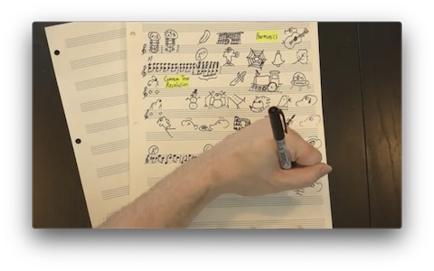 The title refers to the musette, a type of small bagpipe. Bartók's was inspired by Couperin, who wrote keyboard pieces imitating this instrument.[5] The piece consists mostly of imitating the sound effects of a poorly tuned pair of musettes. There is little melody. With drums and pipes and Tambourine of Bartók's Nine little pieces similarly consist of sound imitations of folk instruments.