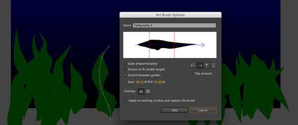 open the Art Brush Options panel. By dragging the the red guides inward