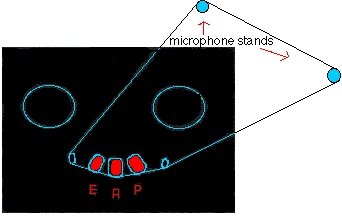 Creating a loop consisted of taking tape with recorded material and splicing the ends of the tape to make a loop. E = Erase head; R = Record head; P = Playback head
