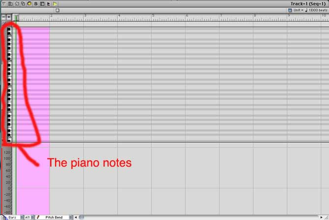 Each MIDI track has a small piano keyboard on its side. The audio tracks