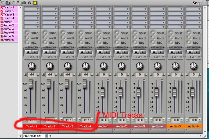 These are the MIDI tracks. Clicking on the name can change MIDI channel