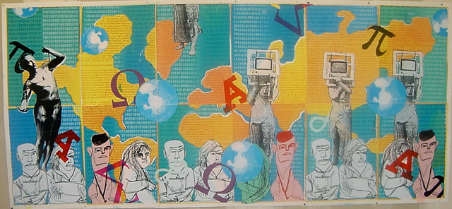 Students from North Allegheny Senior and Intermediate High Schools worked at Artists Image Resource on large screen prints that used many drawings, photographs, paintings, collages and other graphic elements to express our theme. The prints are prototype studies for a 12'X36' print that will be part of the stage set. We will also be producing an edition of prints to promote the event. These prints will be part of an exhibit that will accompany the performance and an exhibit at the AIR Galleries.
