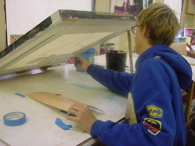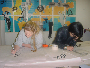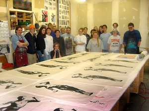 Students and teacher Jon Clemmer make decisions about the placement of symbols on the print. | |||||||||||
