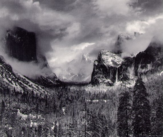 Works by Ansel Adams and several contemporary landscape photographers in black