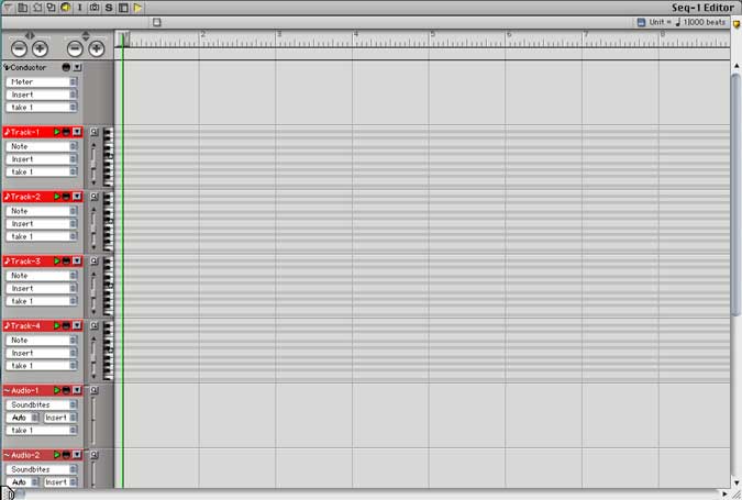 Each MIDI track has a small piano keyboard on its side. The audio tracks