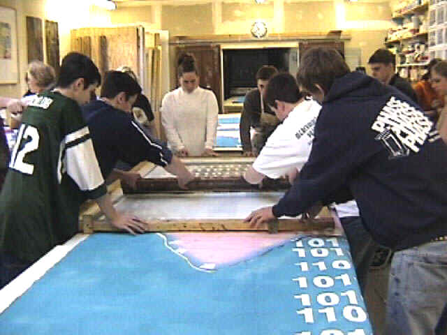 Students from North Allegheny Senior and Intermediate High Schools and Carson, Ingomar and Marshall Middle Schools worked at Artists Image Resource on a 36' print that was used for the Troika Ranch Performance. These prints will be part of an exhibit at the AIR Galleries, March 20 through April 5.
