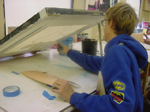 Students and teacher Jon Clemmer make decisions about the placement of symbols on the print. | |||||||||||